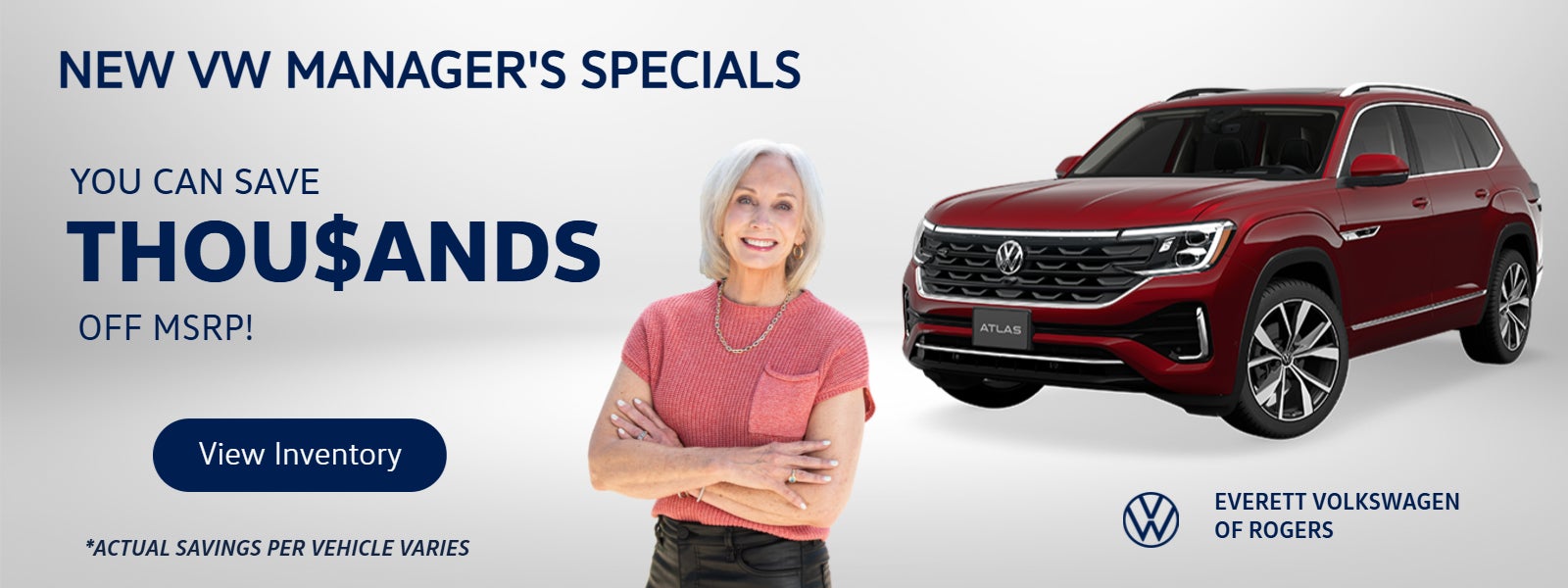 Everett Volkswagen Pricing Disclaimer: Although every reasonable effort has been made to ensure the accuracy of the information contained on this site, absolute accuracy cannot be guaranteed. This site, and all information and materials appearing on it, are presented to the user "as is" without warranty from Dealer, either express or implied. All vehicles are subject to prior sale. Price does not include a 6.5% Arkansas state sales tax. The online price does include a $129 Service & Handling fee and a $1 lien fee. We’re sorry, availability of some equipment, options or features may be limited due to global supply issues affecting the auto industry. Please be sure to verify that the vehicle you purchase includes all expected features and equipment.